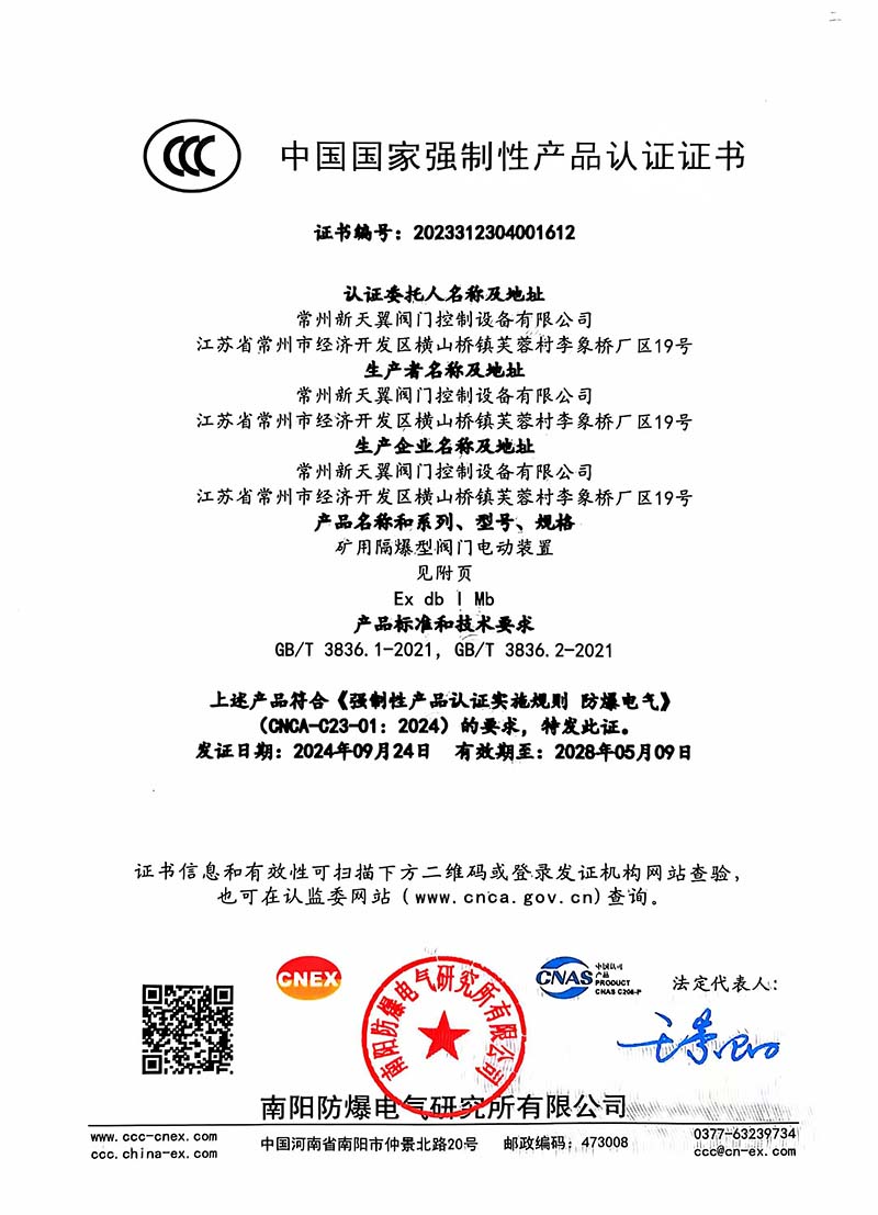 礦用隔爆ZB10-24中國國家強制性產品認證證書110.1